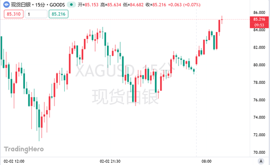 启远网配资周二截至发稿,现货白银站上85美元/盎司,日内涨7.27%。纽约期银向上触及85美元/盎司,日内涨10.38%。