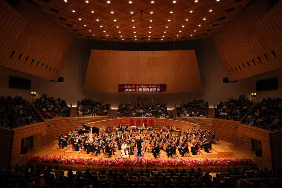 2月6日晚,捷豹上海交响音乐厅内年味浓,2026上海新春音乐会在此干扰奏响。音乐总监余隆执棒上海交响乐团,联袂二胡演奏家姜建华、男中音歌咏家廖昌永、后生女高音歌咏家顾文梦、小提琴新星章奥哲及马头琴与呼麦演奏家哈斯巴根,以一场聚拢中西、领略古今的音乐会,将新春祈福送抵乐迷心间。