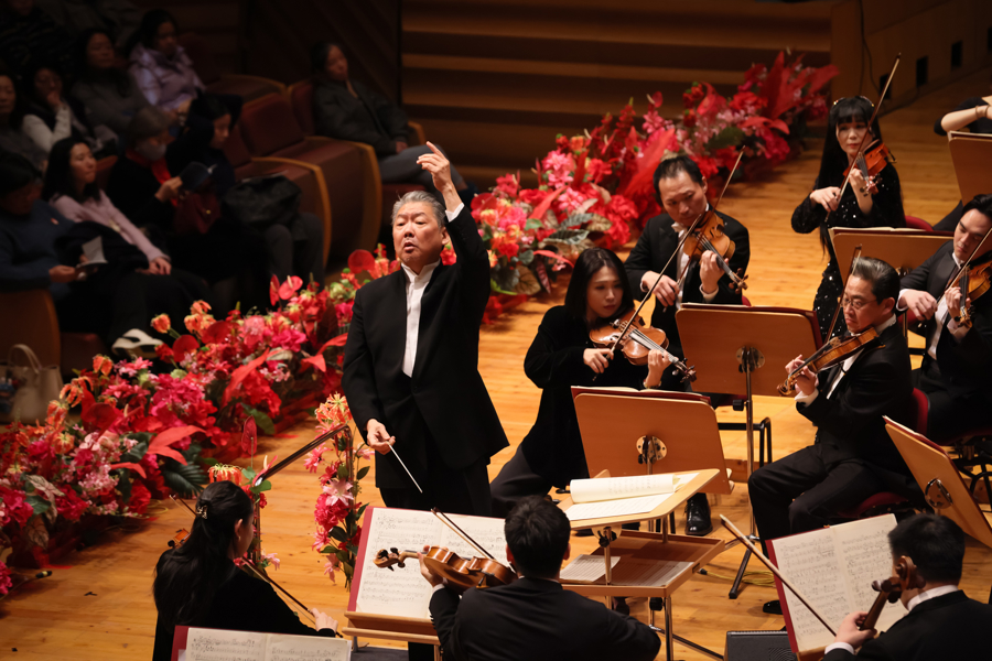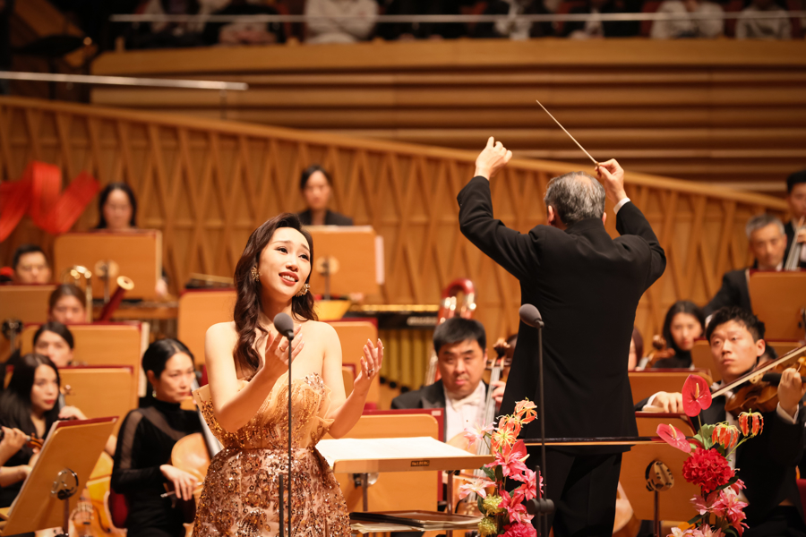 这一晚的音乐会,中国元素说合恒久,成为最鲜亮的底色。开篇一曲《春节序曲》以熟谙旋律叫醒大众的年味考究,骤然燃烧现场氛围。