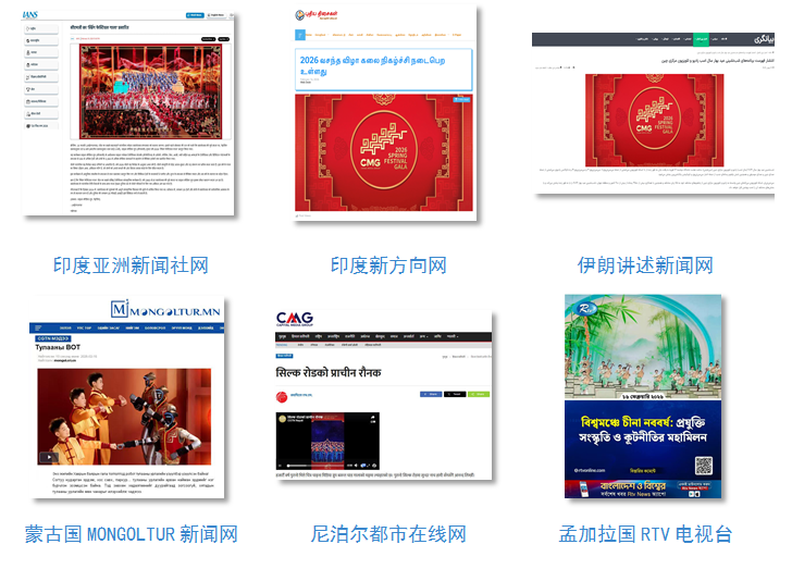 总台通过85种谈话传播平台快速编译播发多语种特稿。《武BOT》《丝路古韵》《喜雨》《踏地为节》《吉量》《绘新春》等机器东说念主、跳舞、杂技等节目,向寰球充分展现中中文化新意敞开与科技智造硬核实力。关系报说念被法国BFM电视台官网、意大利埃瑞亚通讯社、《欧洲时报》德文网、葡萄牙《南边日报》、日本共同社、巴西旗头电视台、波兰媒体协会官网、保加利亚“不雅察”网、塞尔维亚蒙多传媒集团、克罗地亚当天奥西耶克网、印度亚洲新闻社、泰中新闻网、伊朗敷陈新闻网、蒙古国MONGOLTUR新闻网、尼泊尔王人市在线网、孟加拉国RTV电视台等外洋主流媒体世俗转载转发。