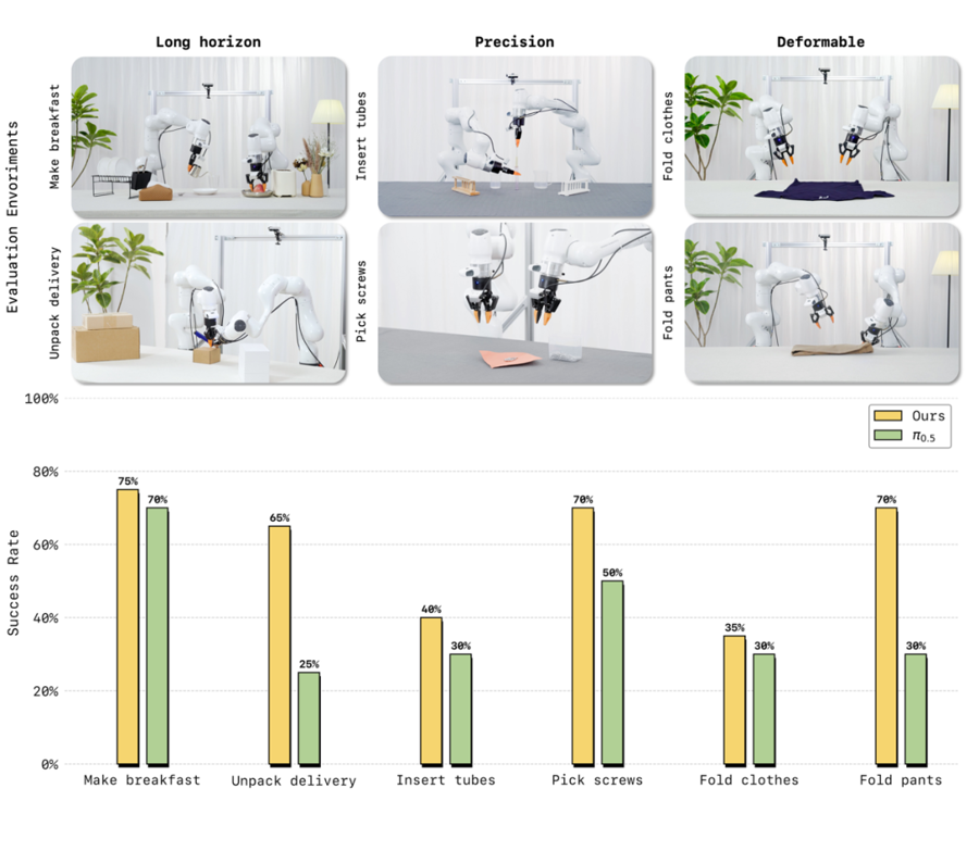 真机评测中,灵波LingBot-VA在多项高难操作任务上性能高出业界标杆。